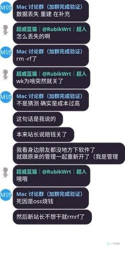 MacWk 关站的时间大概是在十月初[4],后来出现的一个比较可信的说法是,新站长采用的是 OSS 自建下载(也就是阿里云的对象存储),成本过于高昂,入不敷出之下,新站长决定删站跑路。