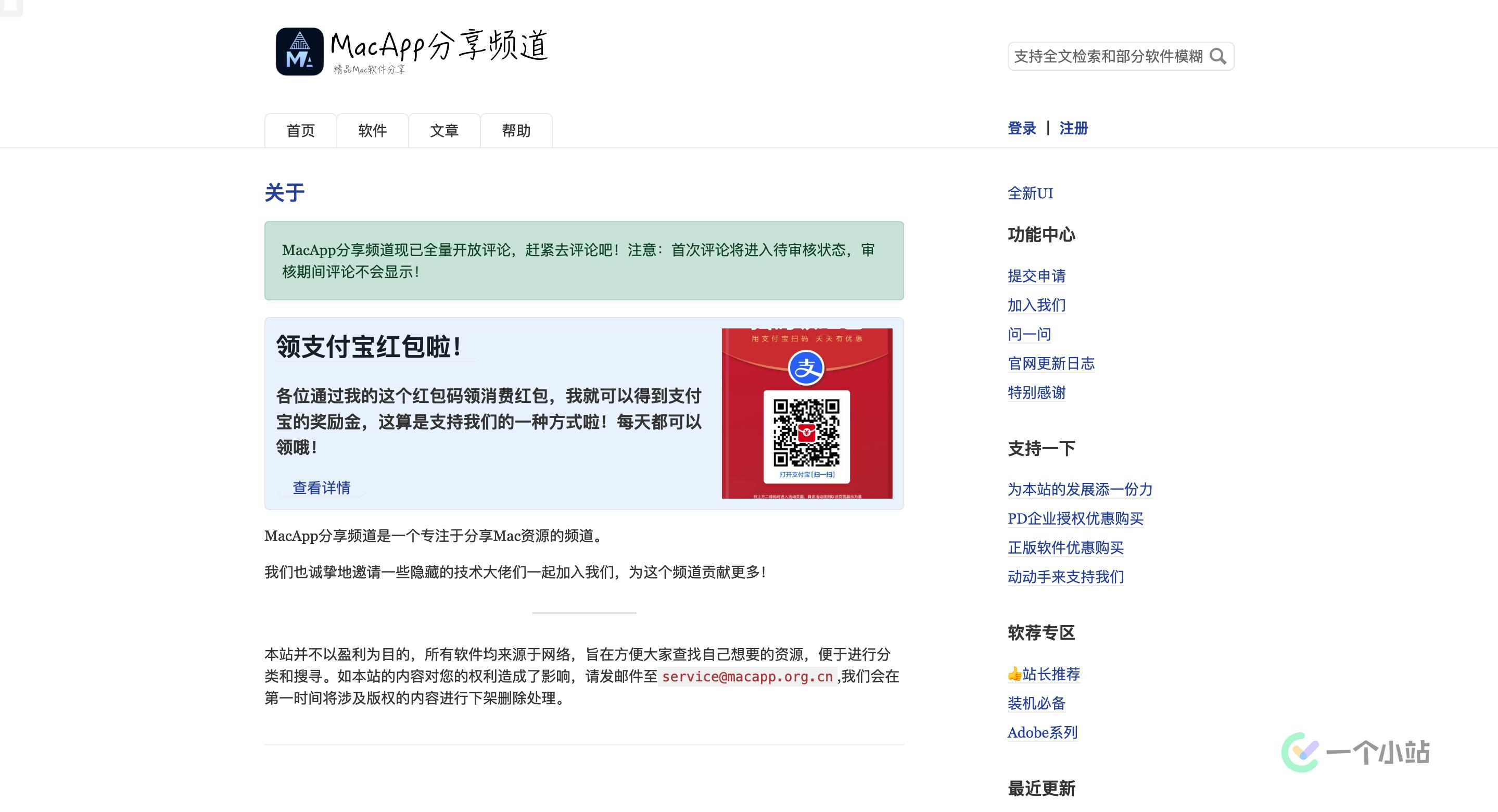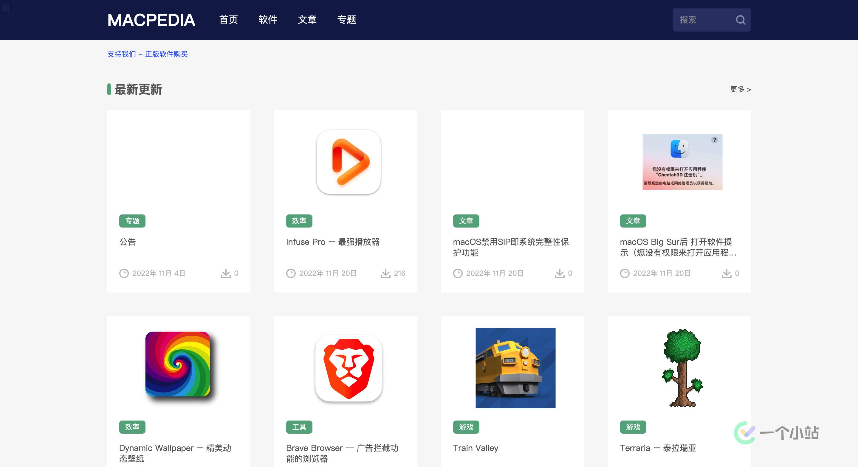 一个小站综合了目前较为常见的 Mac 软件下载站点,简单收集列举如下: