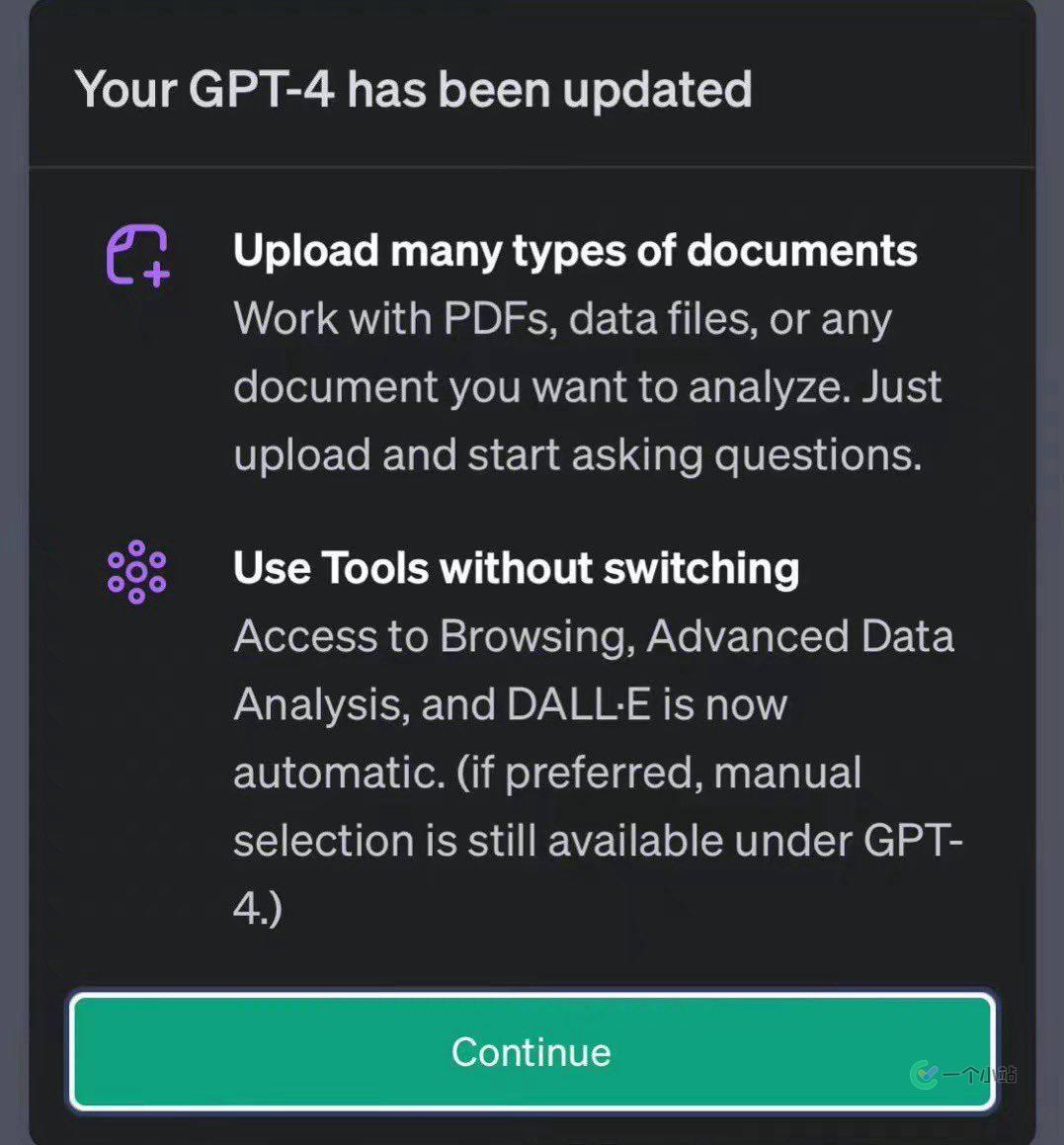 GPT-4 (All Tools) 升级提示 (图源网络)