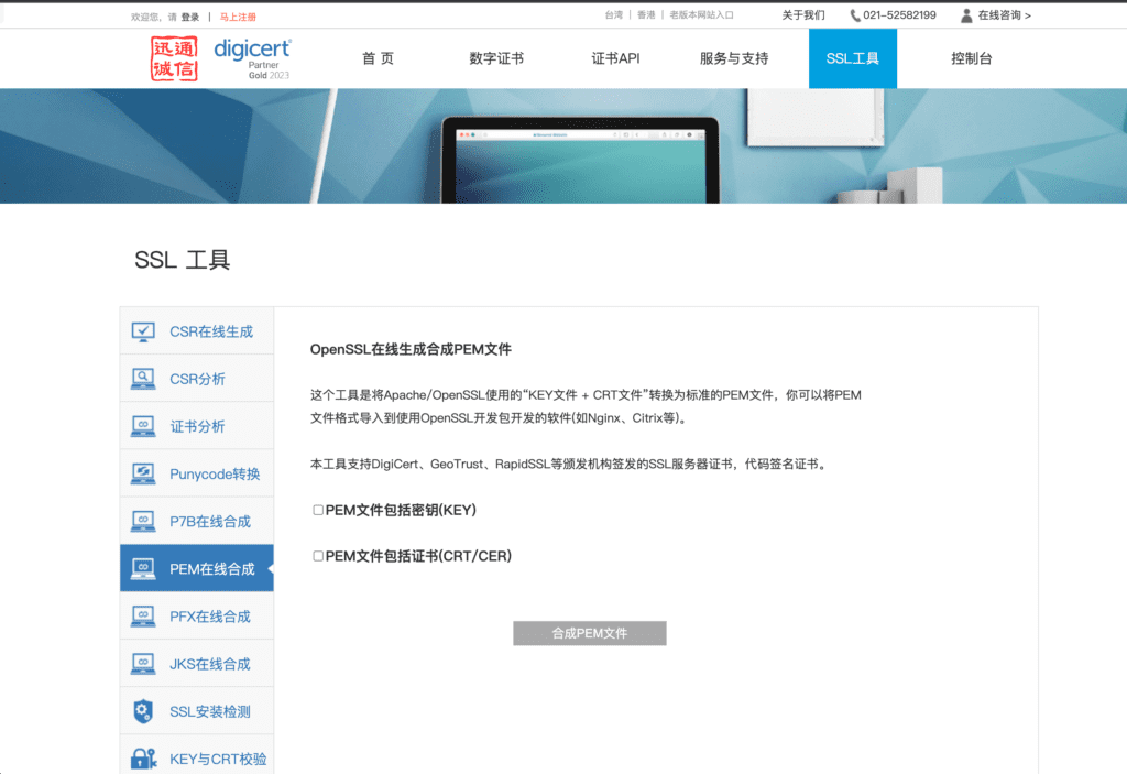 本站托管于 Plesk 面板,使用的 SSL 证书格式是 .pem ,因此我们可以利用 这个网站 合成完整的 .pem 证书。