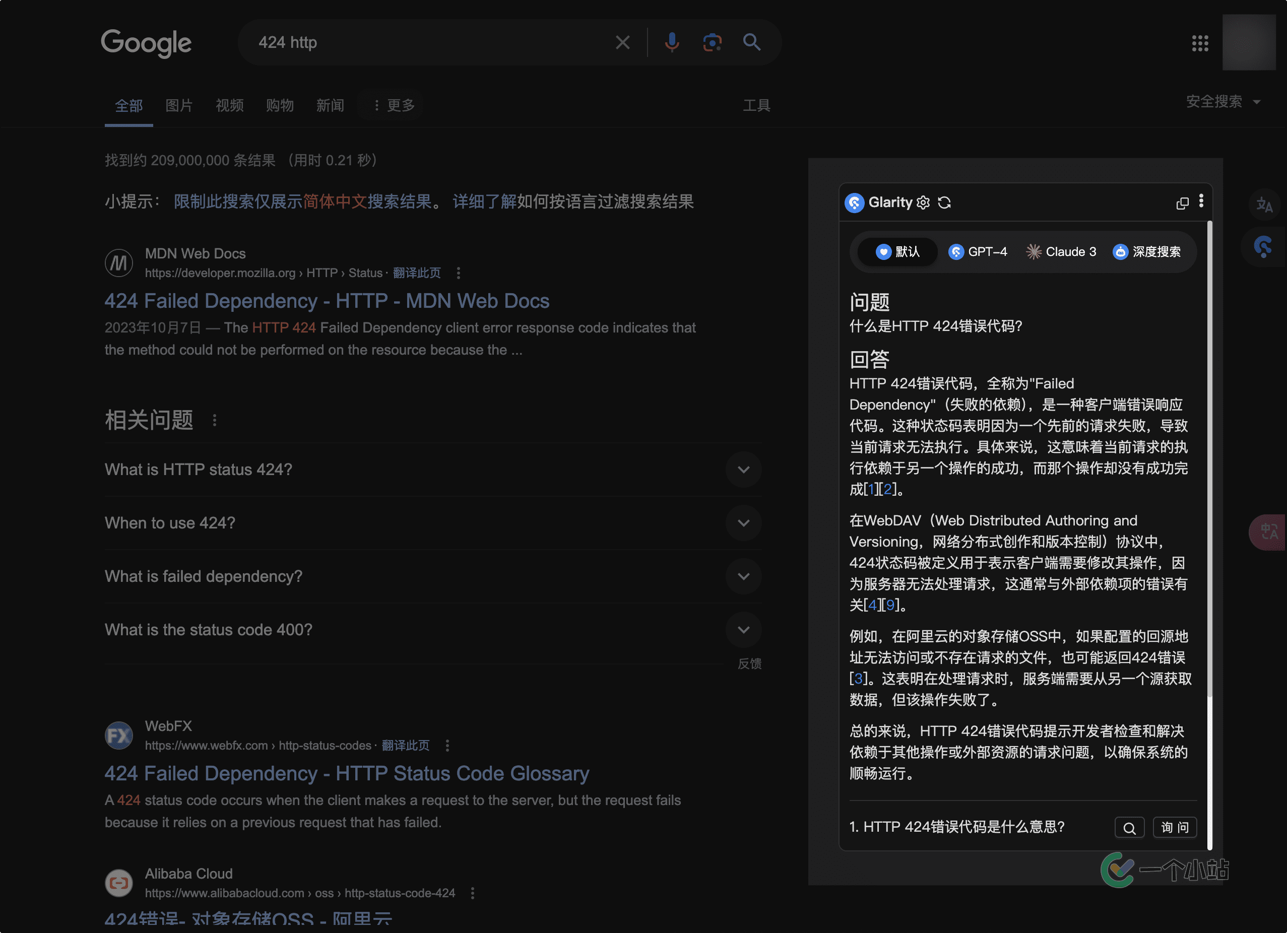 比如我正在使用的浏览器插件Glarity,就支持在众多国内外搜索引擎的搜索结果页调用 LLM 进行内容总结,还可以直接使用搜索结果提问,或是像 Perplexity 一样进行「深度搜索」,体验还是非常不错的。