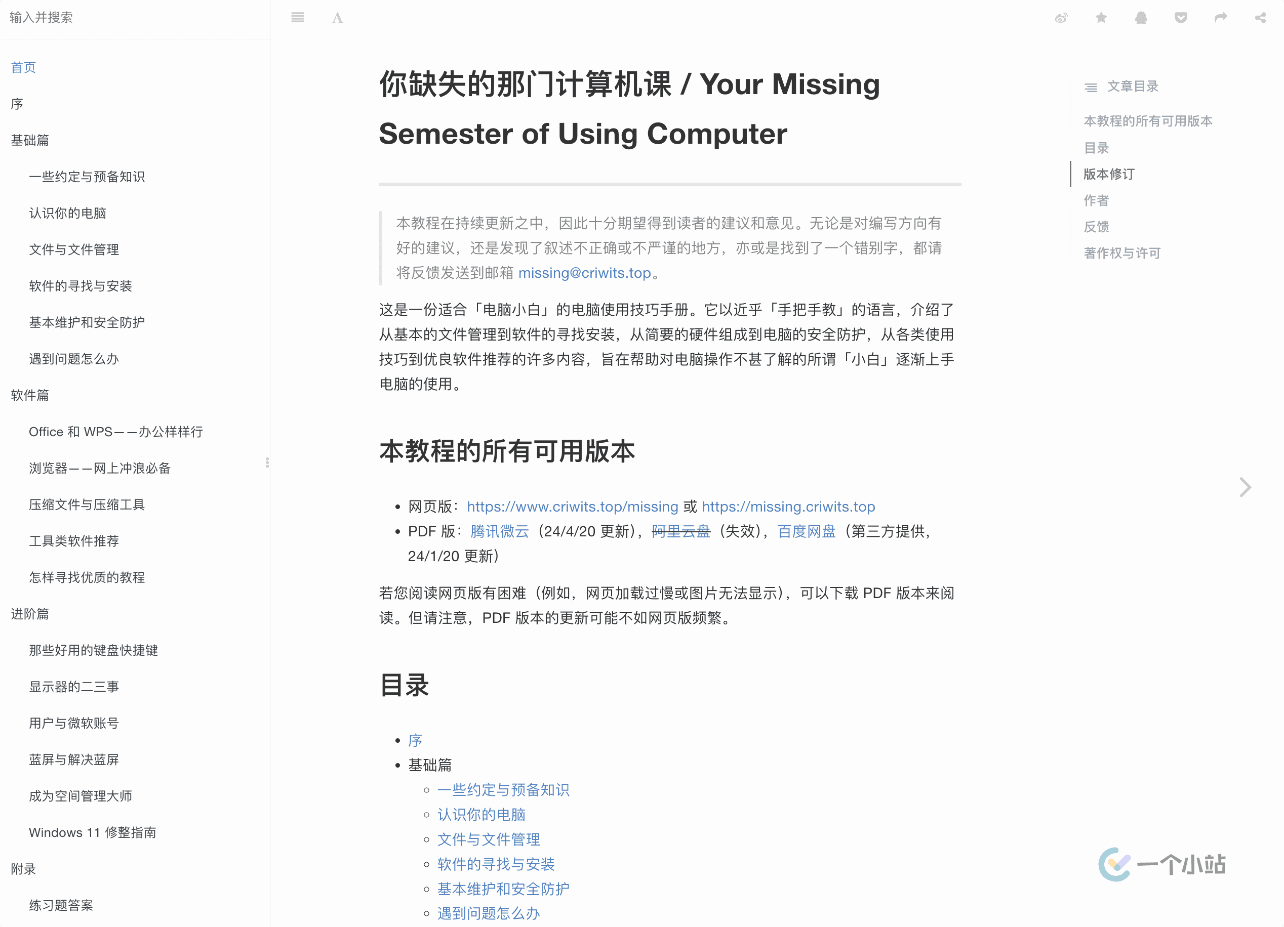 一个小站的初衷是「在互联网上淘金」,前人已经给我们留下了非常丰富的「计算机扫盲」课程,在这里推荐几个代表。如果大家有更好的课程,也欢迎在评论区推荐。